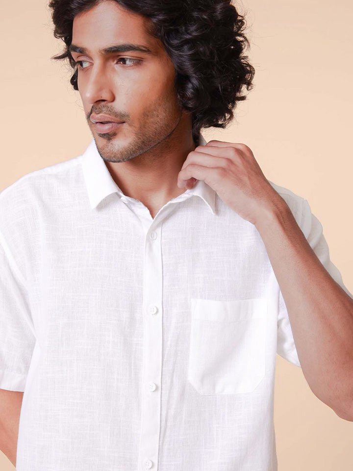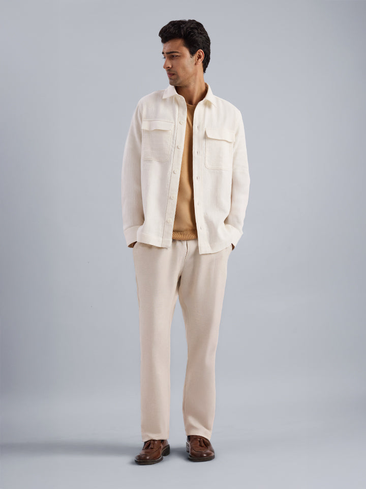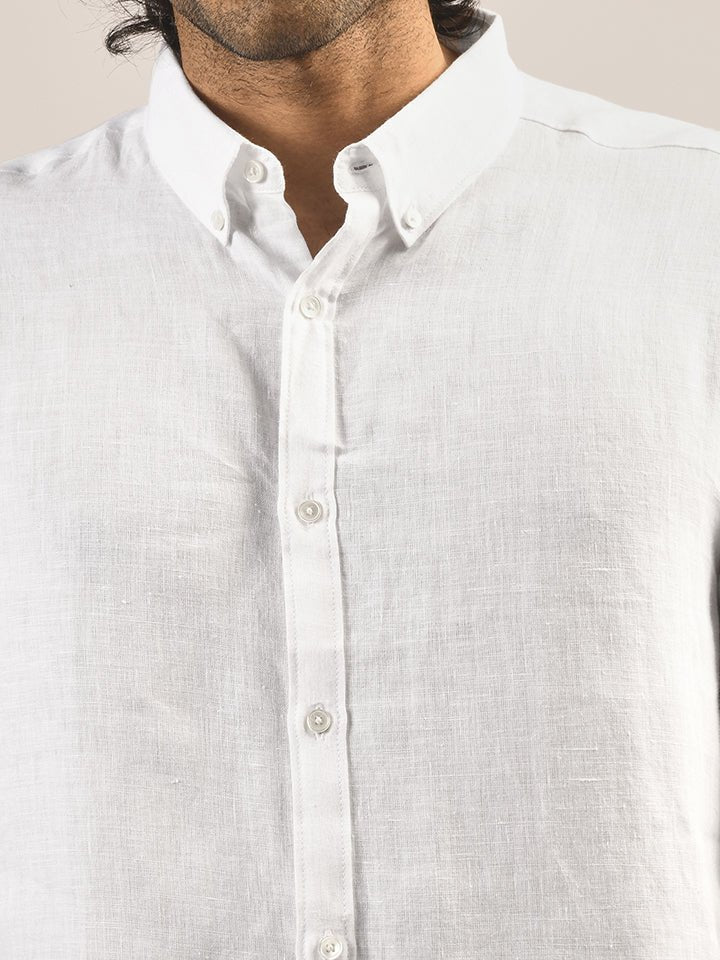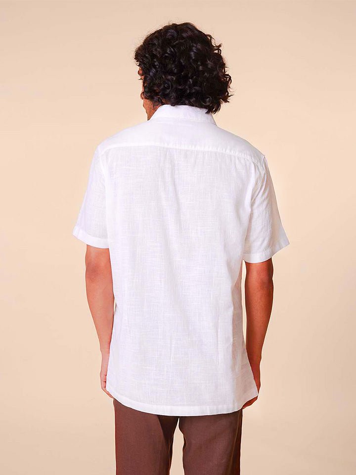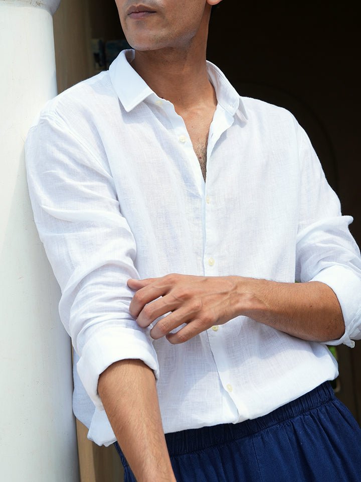 Mandarin Collar Cotton-Linen Shirt - Zephyr