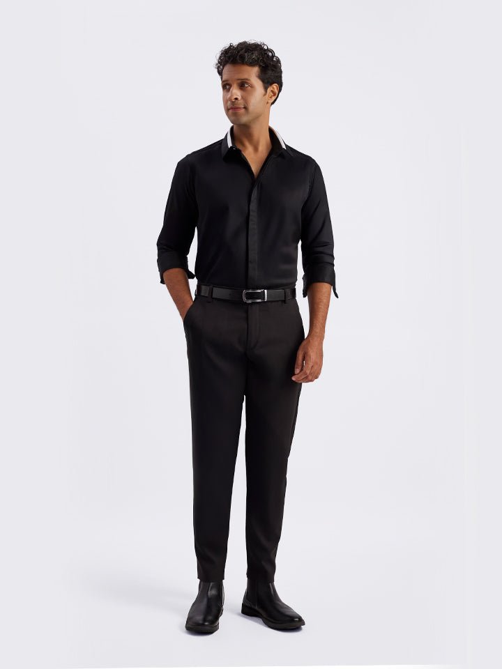 Smart Cotton Satin Stretch Black Party Shirt - Noir