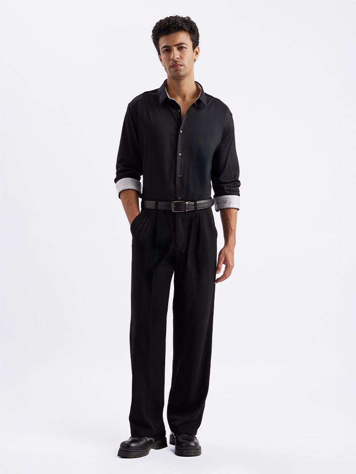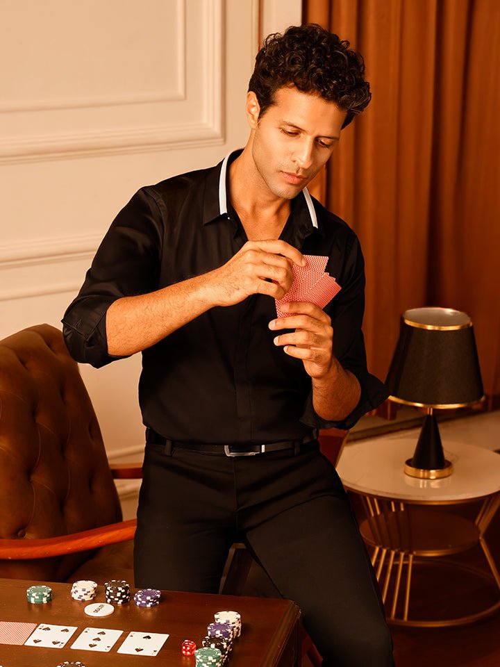 Cotton Satin Stretch Black Party Shirt - Rhythm