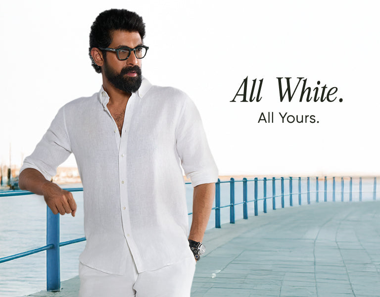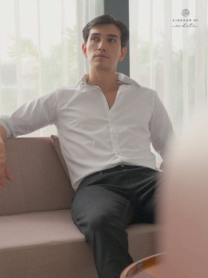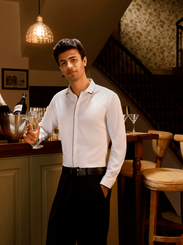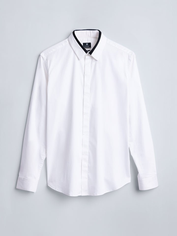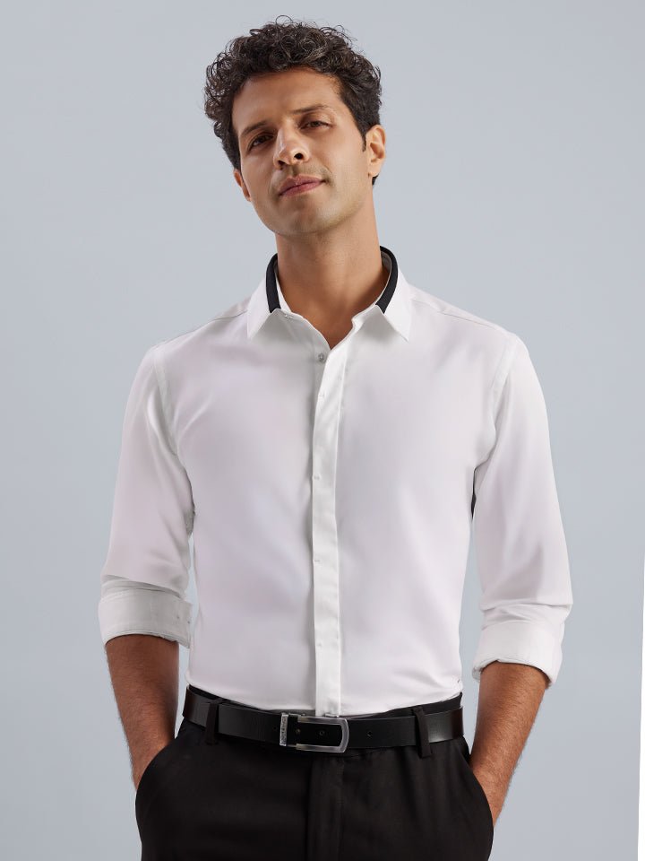 Contrast-Piping Cotton Satin Stretch White Party Shirt - Midnite