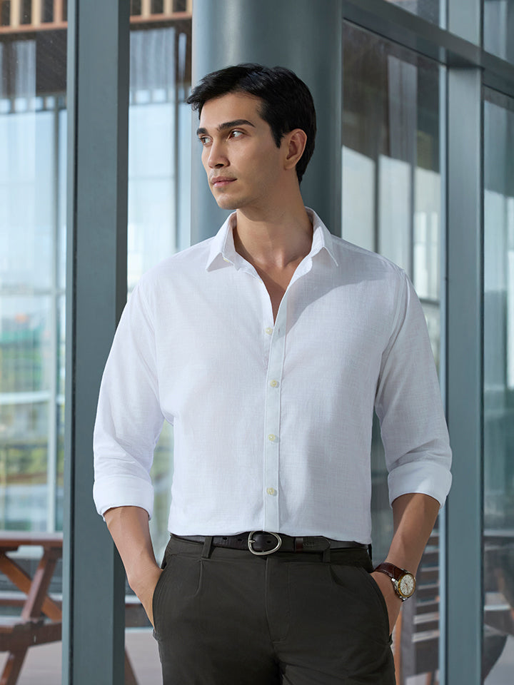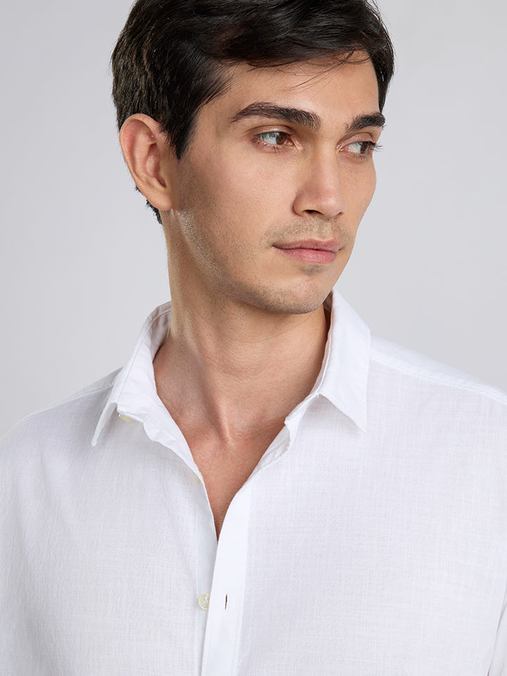 Smart Cotton Satin Stretch White Party Shirt - Soirée