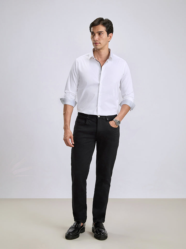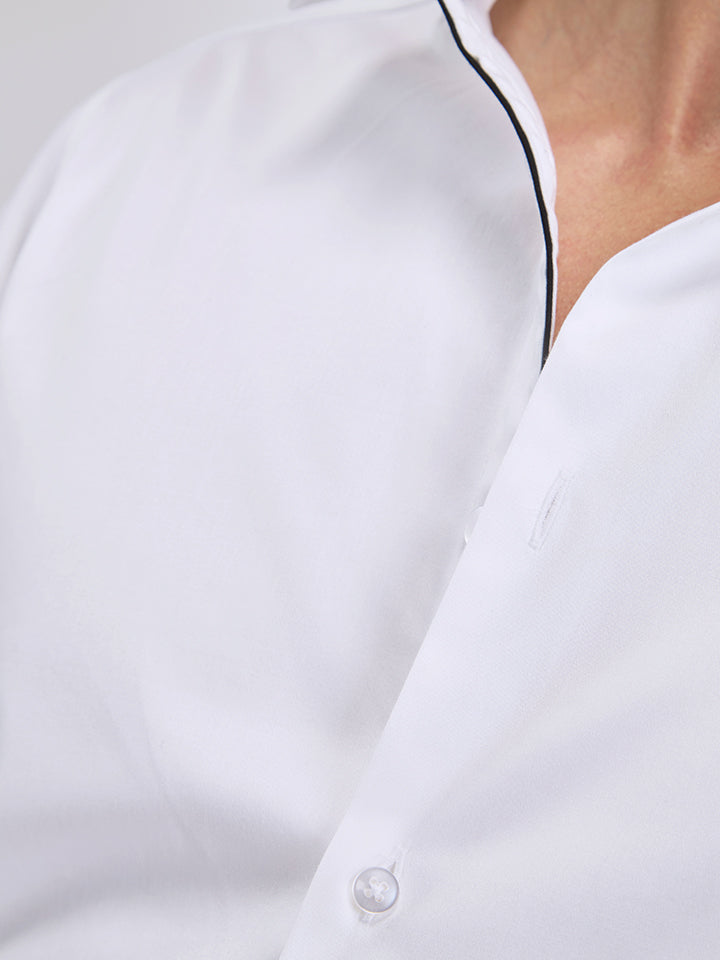 Cotton Satin Stretch White Party Shirt - Zest
