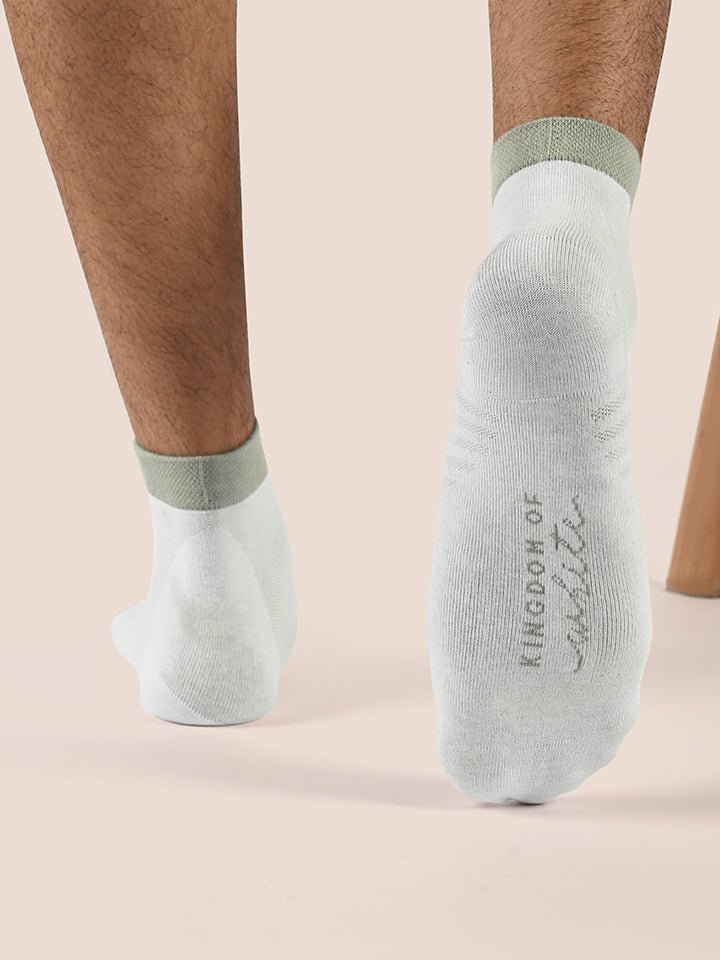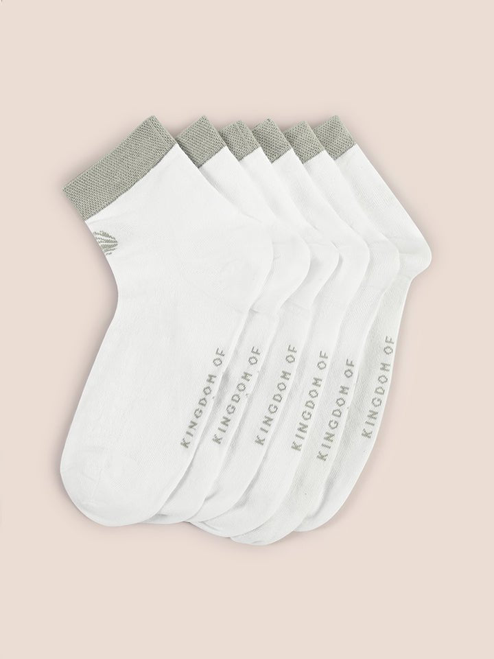 Step into comfort with our 100% cotton knitted socks, designed to offer a soft touch and a stylish look. In a chic quarter calf style, these socks come in a versatile white and grey colour combo.