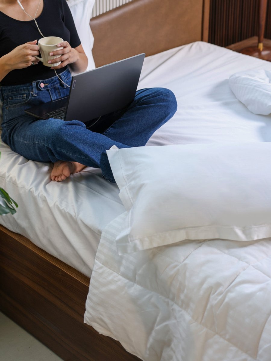 5-star hotels often use luxury bed sheets made from high-quality materials like pure cotton with a thread count of 300 or higher. These sheets provide a soft, crisp feel that enhances guest comfort.