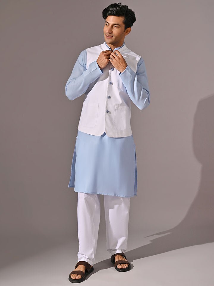 When pairing jeans with a white kurta, opt for darker shades such as indigo or black for a striking contrast. Light blue jeans can also work for a more casual look. The combination of a white kurta and jeans creates a stylish, modern outfit suitable for various occasions.