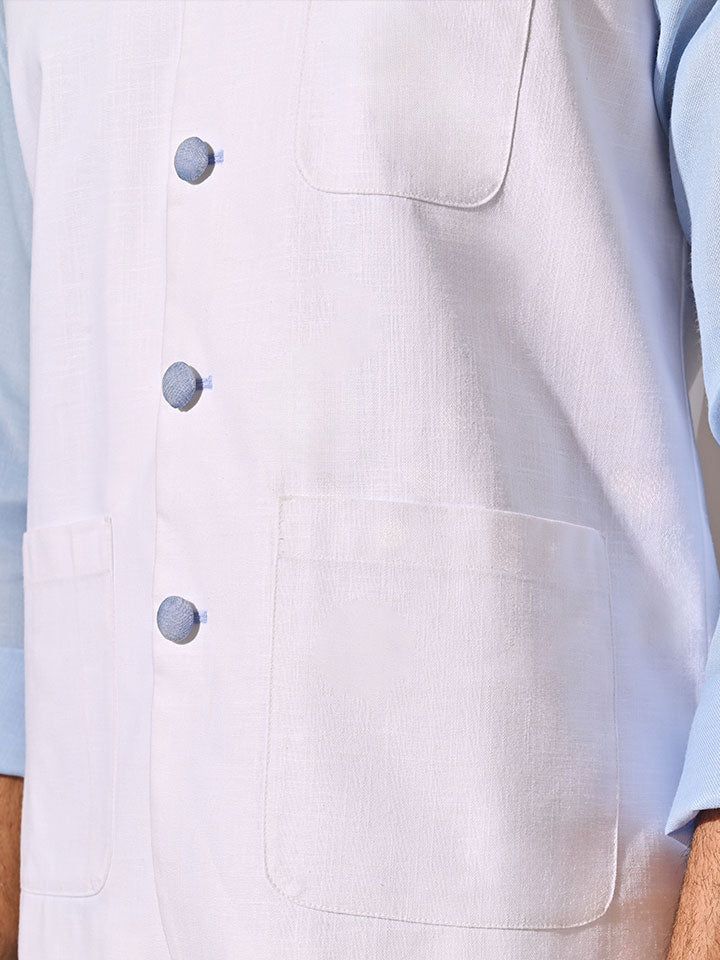 Layer it over a powder blue kurta and cotton pyjama for an effortlessly stylish ethnic look.