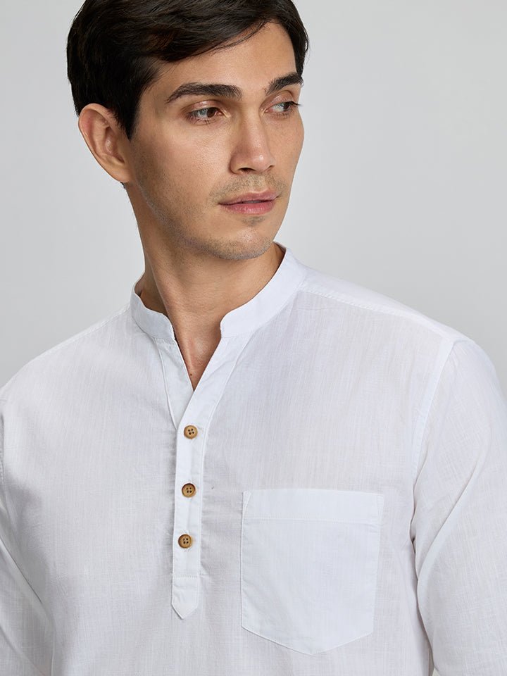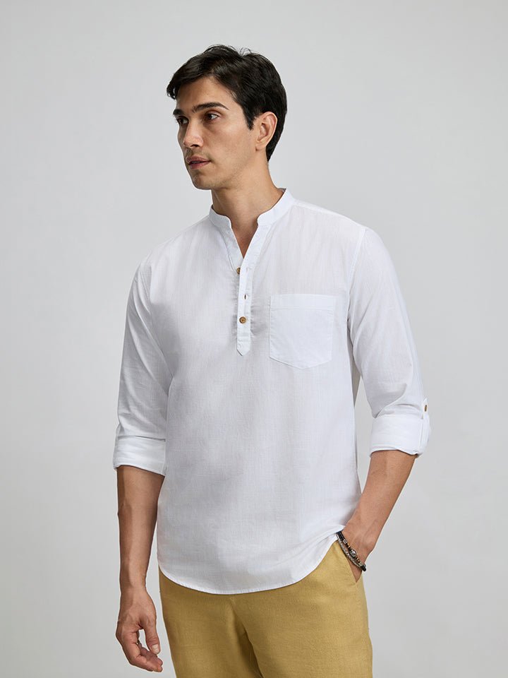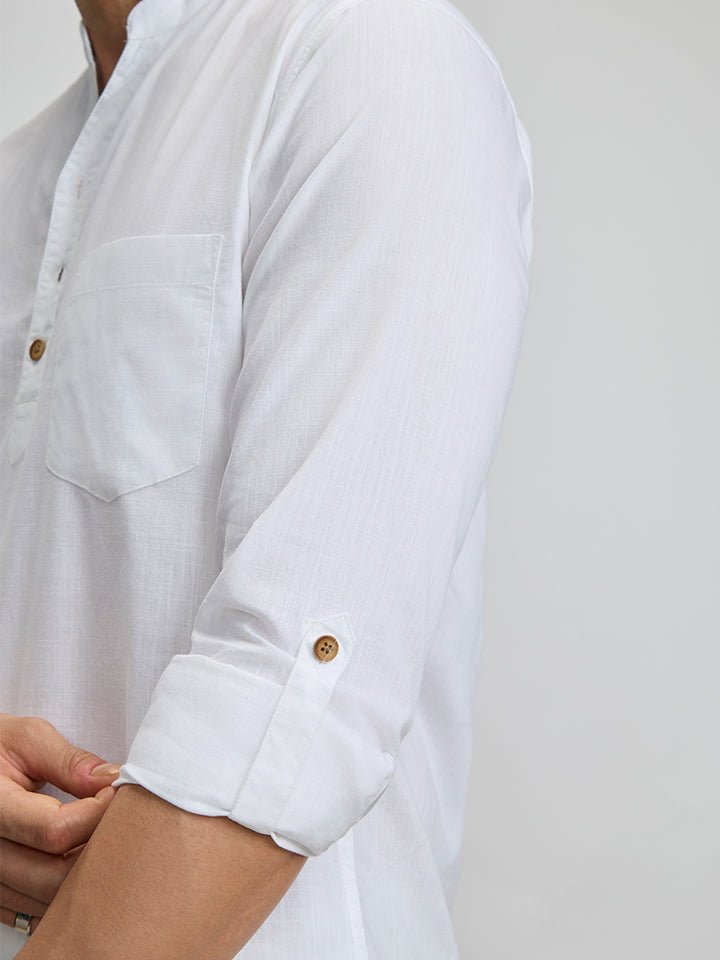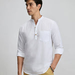 This pop over shirt is crafted from the finest 100% cotton in 30s slub fabric and celebrates heritage craftsmanship and modern ease. Its breathable, airy weave makes it lighter than traditional cotton, wrapping you in comfort that feels like a soft whisper against your skin. The textured slub yarn lends it a handspun richness, a gentle unevenness that tells a story of artisans, tradition, and a fabric that moves with you. This shirt doesn’t cling to your body, allowing free movement while maintaining its natural drape.