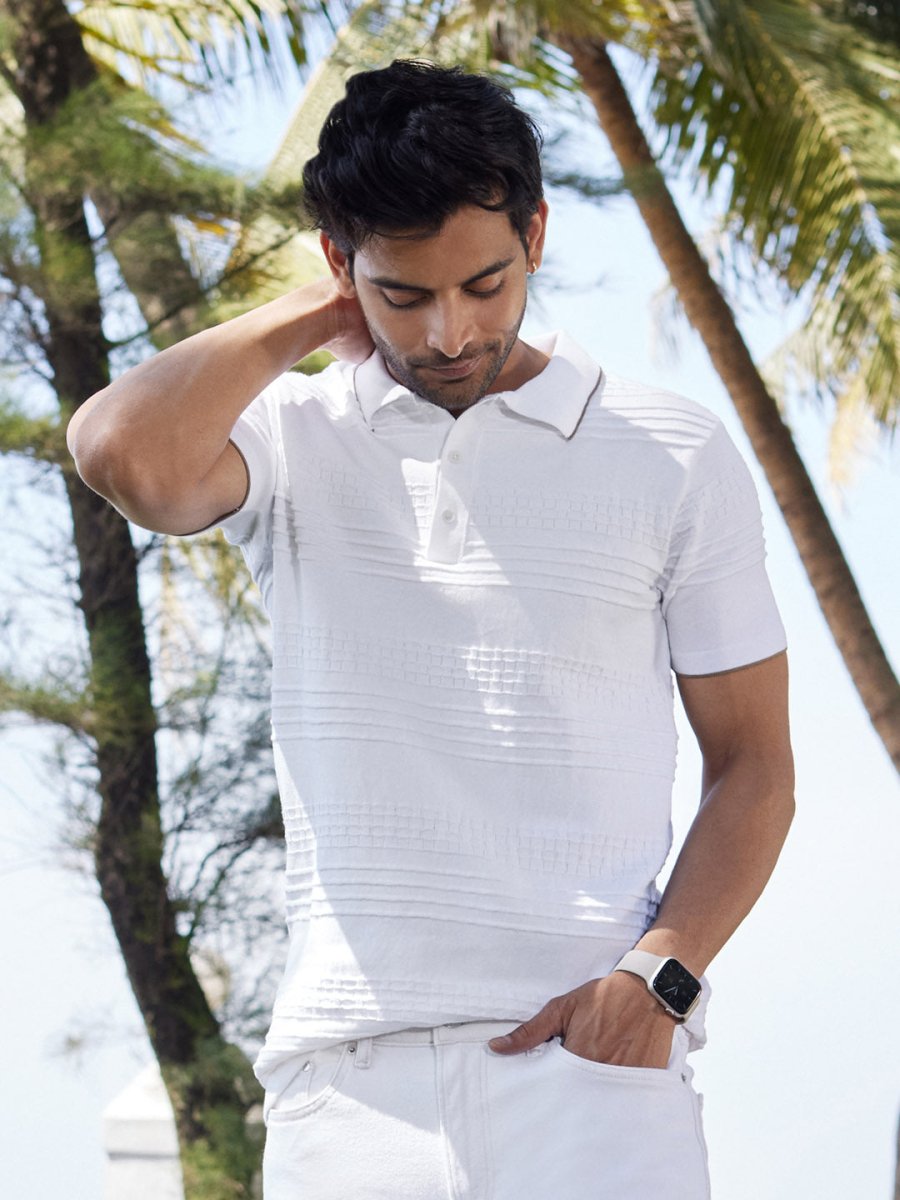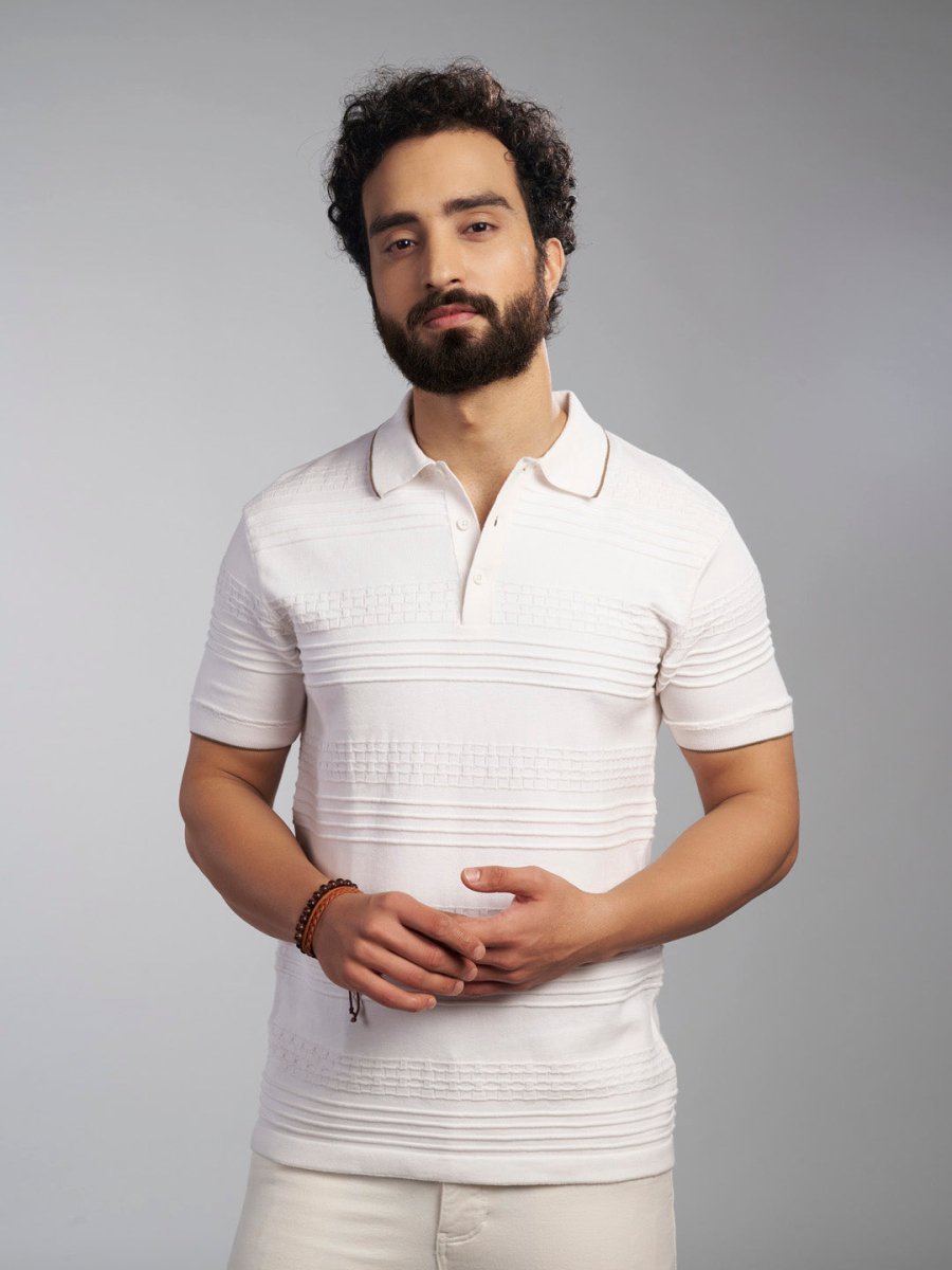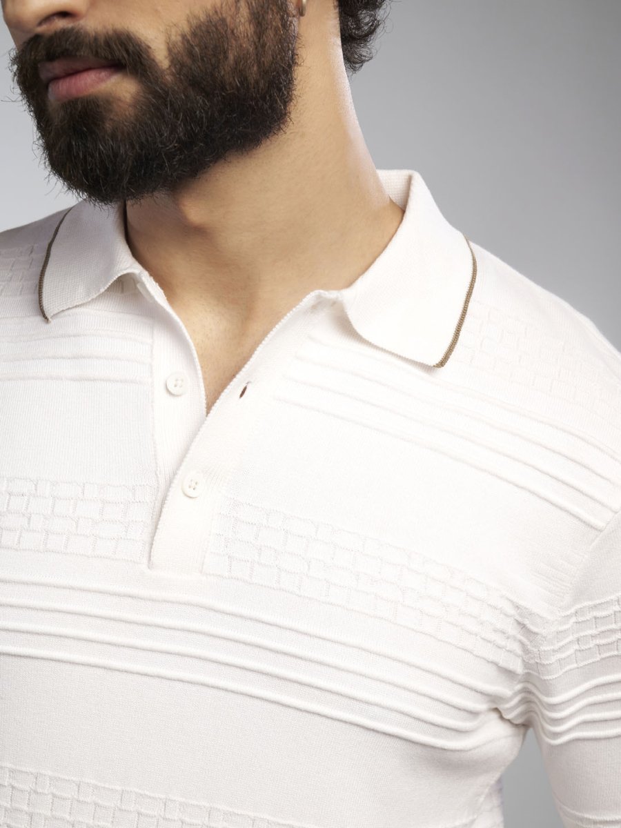 Monochrome Knitted Polo T-shirt - Stripezone