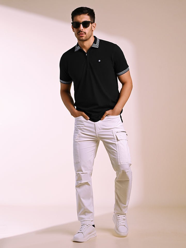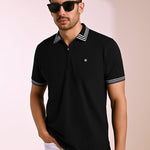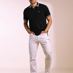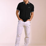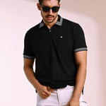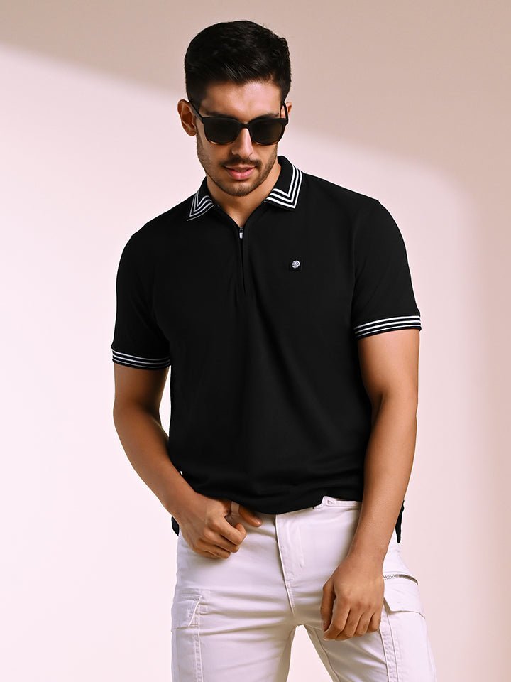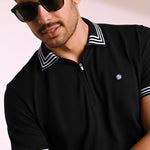 Crafted from high-quality cotton stretch pique knit, this polo has a soft handfeel and is created for individuals who love making a style statement. The black base with white linear geometric accents add a captivating detail, while the silicone logo on the chest keeps it clean and refined — perfect for nights out with friends.