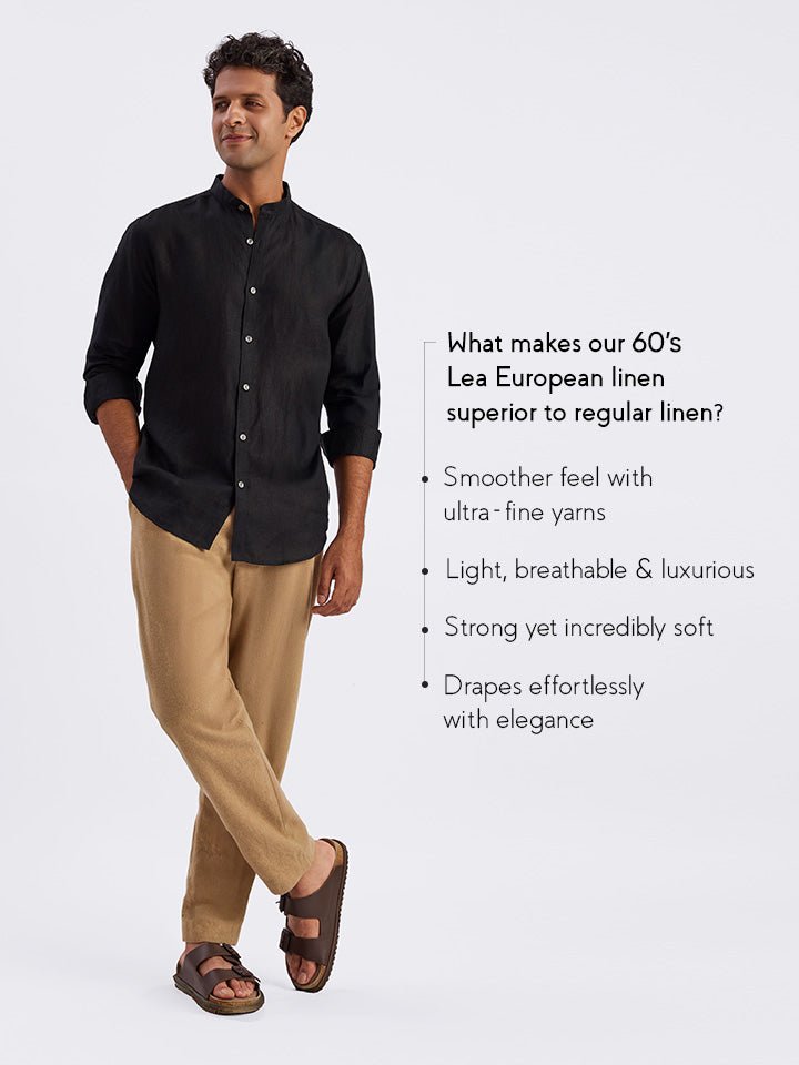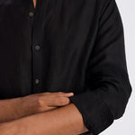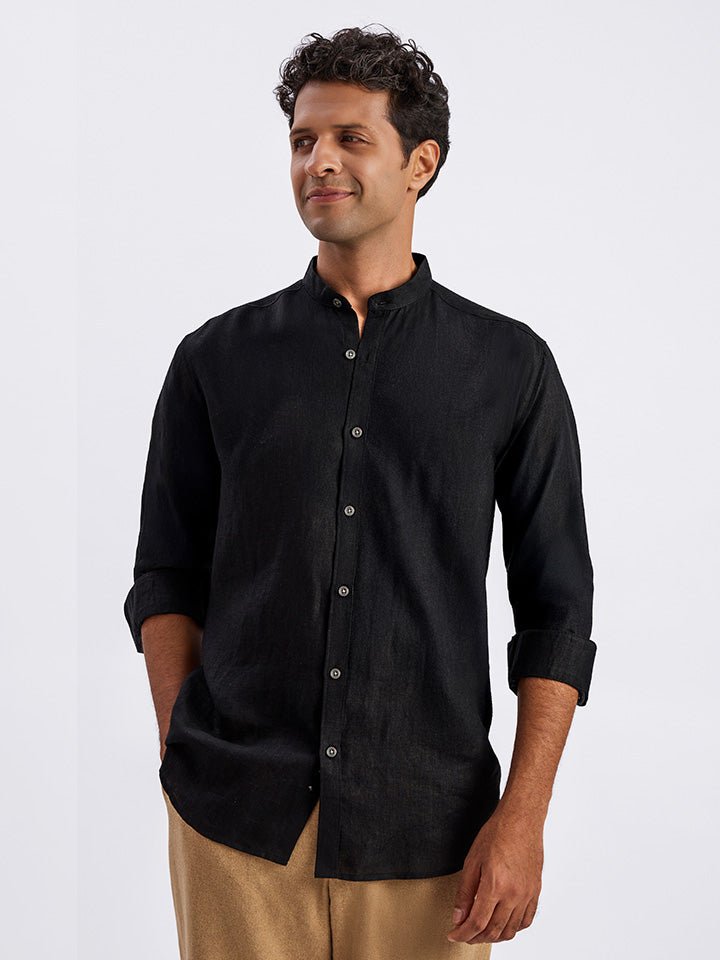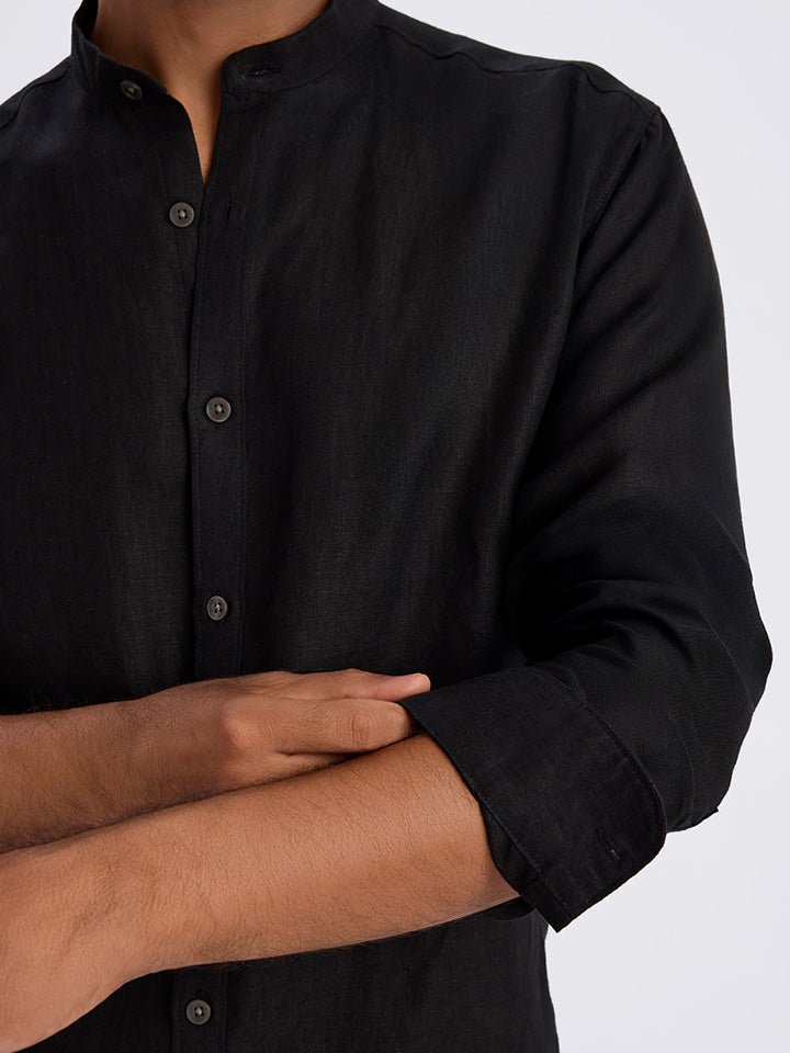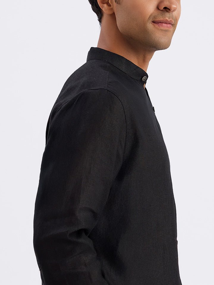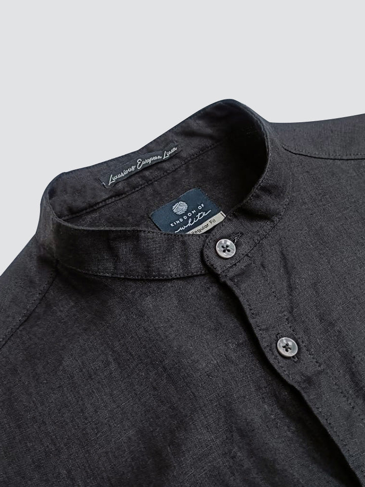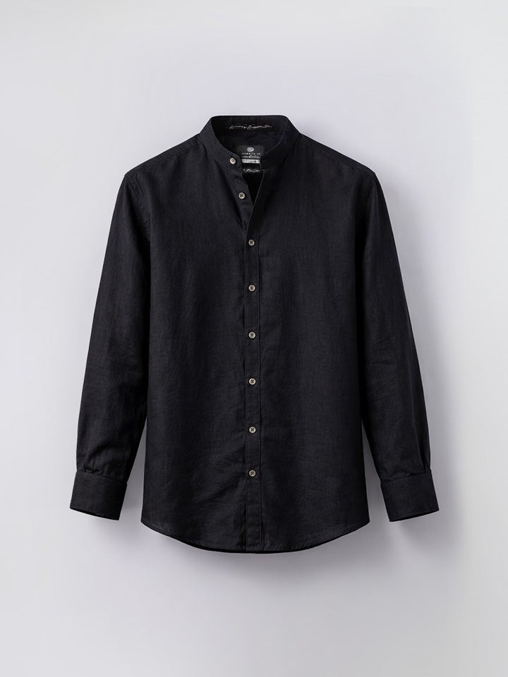Ash 100% European Linen Mandarin Black Shirt