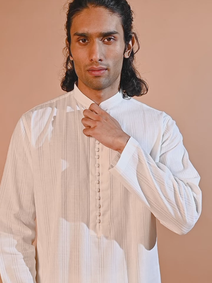 Mandarin Collar Dobby Kurta - Sattva