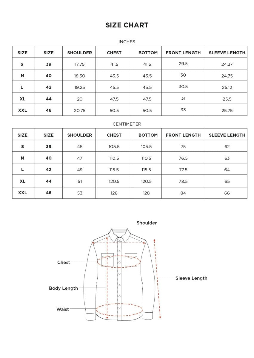 - Subtle printed trim details at the inner yoke and cuffs for quiet character