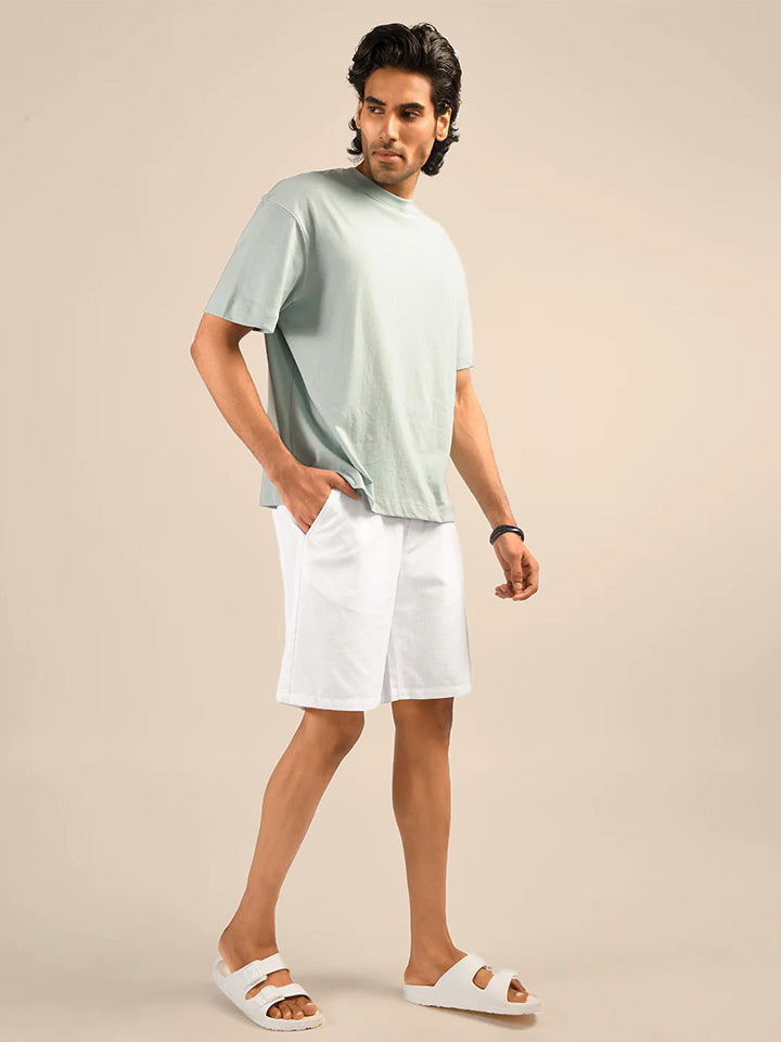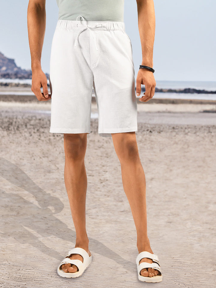 Men's white shorts are currently in trend, making a stylish statement in summer wardrobes. They offer a fresh alternative to darker shorts and can be dressed up or down easily. Pair them with casual shirts or graphic tees for a relaxed look. White shorts are perfect for beach outings or casual gatherings.