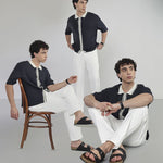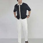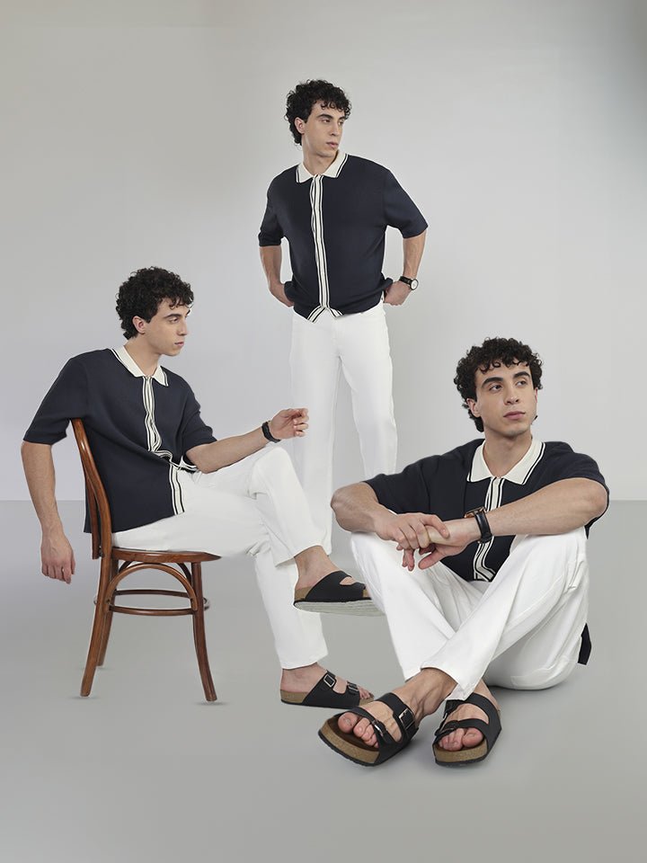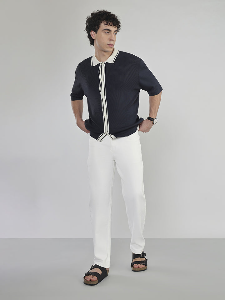 Dress up with a button-down for an effortless formal look or a white tee for a casual look.