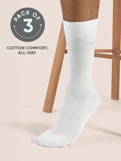 White Full-Sleeve Cotton Crew Neck T-Shirt - Emblem